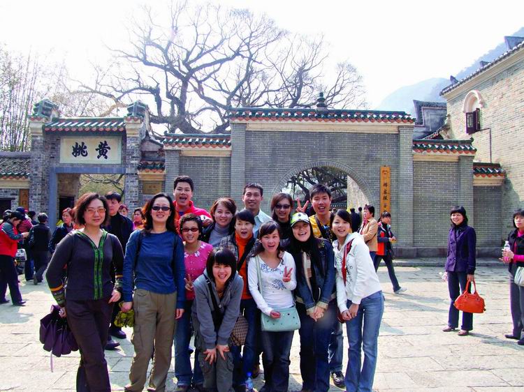 第三日清晨,整裝待發(fā)八點(diǎn)前往黃姚古鎮(zhèn)。賀州是粵東的一座新興城市,而黃姚,卻有著近千年的厚重。從古鎮(zhèn)入口前左邊的一條岔路走進(jìn)去,首先觸目的便是一條清澈的小溪、一棵參天的古榕樹,我們開始細(xì)細(xì)觀賞這個(gè)小鎮(zhèn)。古榕的軀干伸向小溪,又從空中垂下縷縷氣根,與水中的倒影連為一體。溪邊水井里清可見底,偶有小魚游動(dòng)。據(jù)說黃姚是按九宮八卦陣式布局,鎮(zhèn)上的石板街有8條,共99999塊青石板,最早鋪砌于清順治年間。年代久遠(yuǎn),不知有多少人走過,青石板已被磨得像鏡子般光滑,隱約泛著人影。橋下的姚江,如今看水依舊清碧,可是繁華不再,顯赫的牌匾也只能靜靜地訴說著昔日的輝煌。石板路的小村落很安靜,人們過著日常的生活,村婦們?cè)诰^溪邊,淘菜洗衣,交流信息,菜渣、閑話都隨溪水流去,并不對(duì)外來的游客有格外的好奇。孩子們快樂地嬉戲著,在那些蜿蜒的巷子里不時(shí)冒出他們快樂的喧嘩。宗祠府第這樣的舊時(shí)輝煌不經(jīng)意地散布于鎮(zhèn)上的民居之中,亭閣前的聯(lián)匾,記錄著文人騷客對(duì)黃姚的鐘愛,只是年代遠(yuǎn)去,如今物是人非。陽(yáng)光下的青石板路上有時(shí)候也會(huì)躺著狗或者貓,你從它們身上跨過去的時(shí)候,它們會(huì)懶懶地翻翻眼皮,然后繼續(xù)睡在陽(yáng)光里。雞們顯得勤快些,會(huì)邁著方步走在你前面東看看西瞅瞅,如果你不急,它會(huì)一直走在你前面,時(shí)間對(duì)它們沒有任何意義。還有那些老房子,任何一座都可能藏著一個(gè)故事。結(jié)了蛛網(wǎng)的窗欞恐怕已有了幾百年的歷史,但是沒有人把這當(dāng)成了不得的事情,一切如常,平靜隨意。