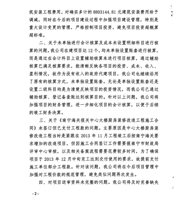 南寧軌道地產(chǎn)集團有限責任公司關于對南寧海關報關中心工程預算執(zhí)行情況審計事宜的復函