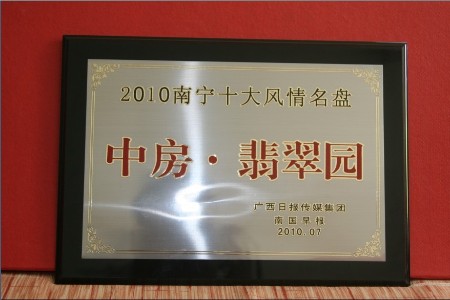 熱烈祝賀中房·翡翠園榮獲“2010南寧十大風(fēng)情名盤”稱號